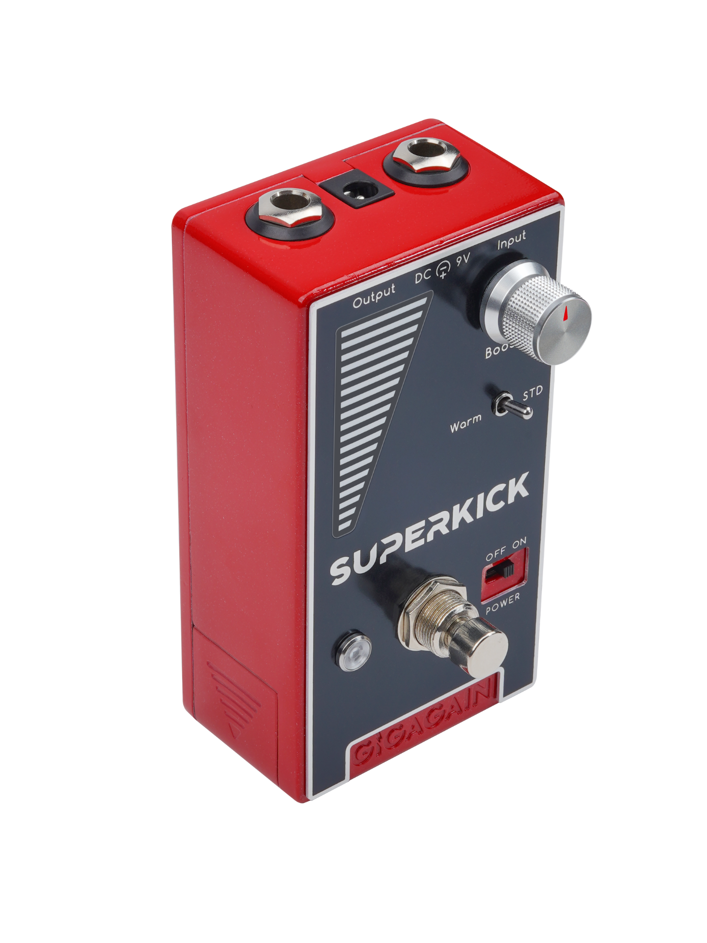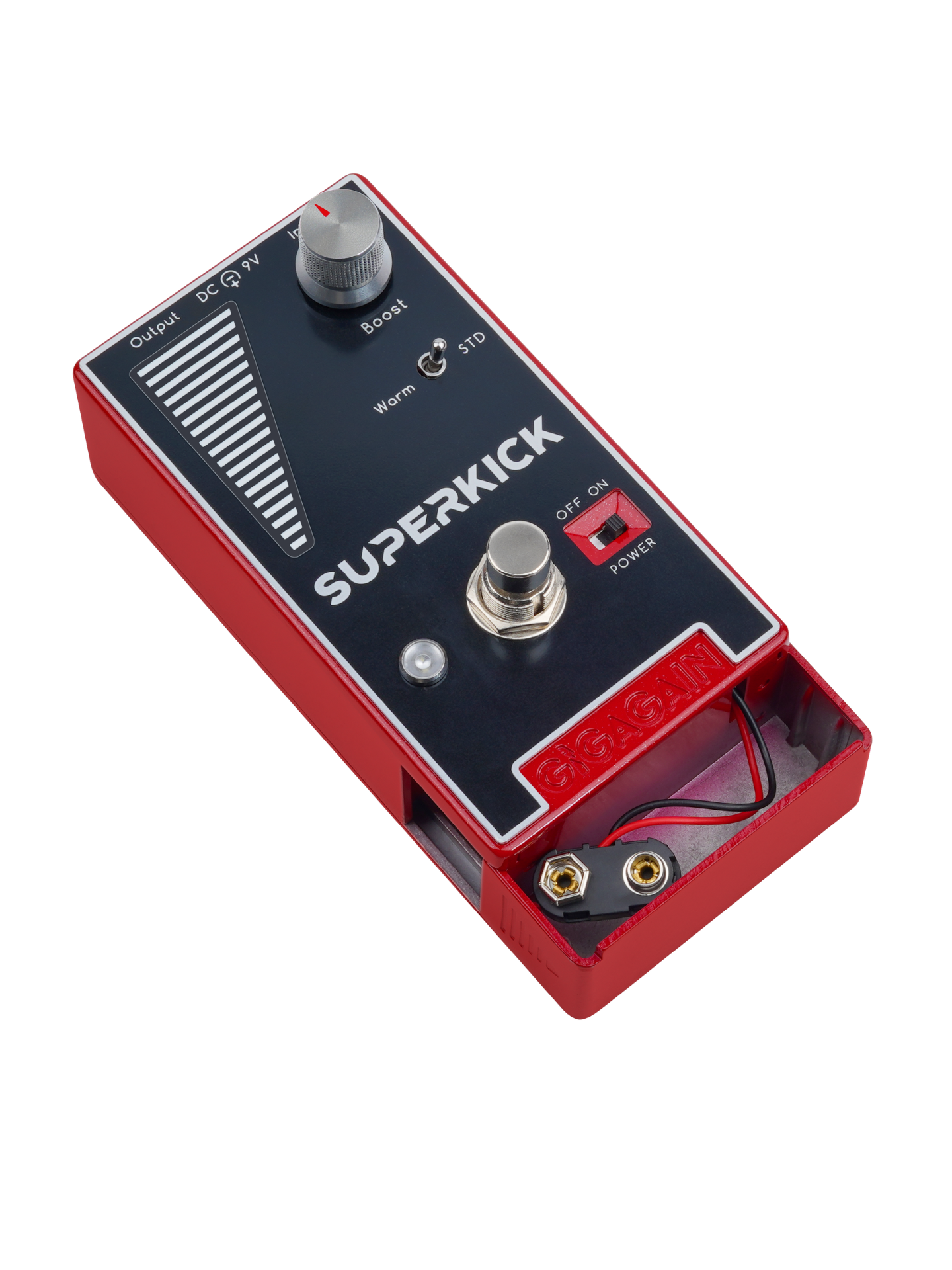 Superkick是一款高品质的Transparent Booster,这种清音激励器可以在保持音色还原度的前提下进行音量抬升,并使你的吉他音色更有层次感。我们还为这款效果器设计了一个独立的信号电平指示灯,在通电时,不管Booster处于激活还是bypass状态,电平指示灯都会保持工作状态,它让你可以直观的看到输入电平的大小变化,从听觉外的维度去感受不同吉他/不同拾音器档位/不同演奏力度/激活booster前后等情况下的音量变化。