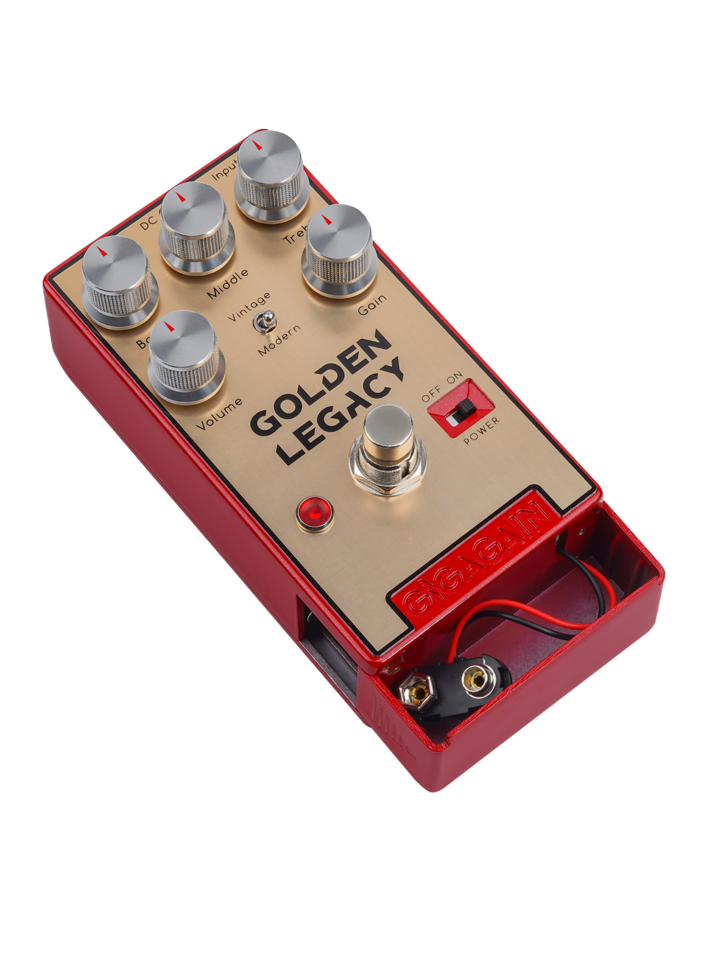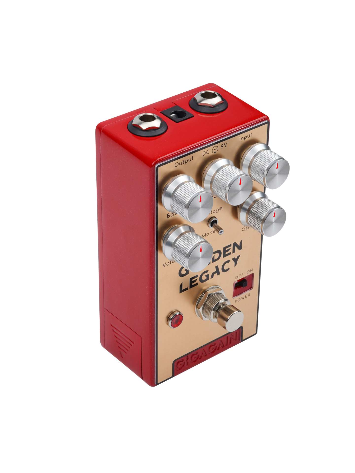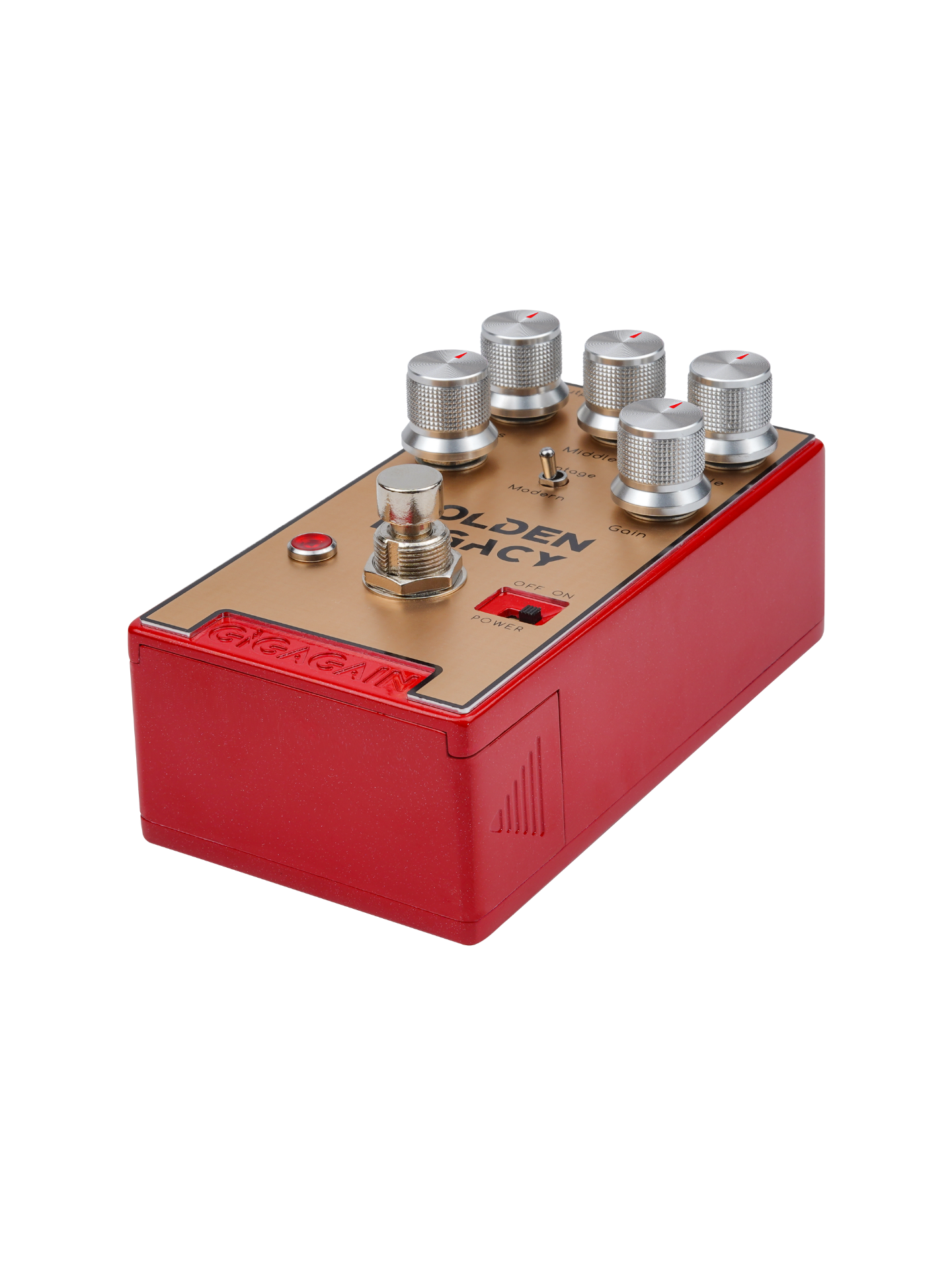 GOLDEN LEGACY 是一款失真单块,音色源自经典的Marshall音箱,为你带来英式布鲁斯/硬摇滚类的音色体验。大部分Marshall in a box类单块不同,GOLDEN LEGACY提供一个音色跨度很大的Vintage/Morden拨档,让你既能得到颗粒感和力度感爆棚的类似老式Marshall电子管音箱后级放大的音色,也能得到现代Marshall音箱的高增益Crunch类失真音色。
