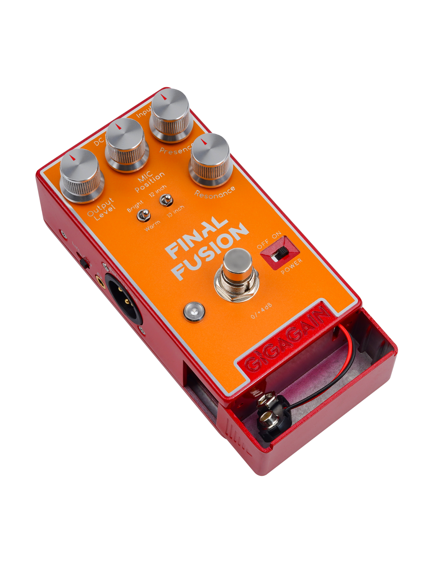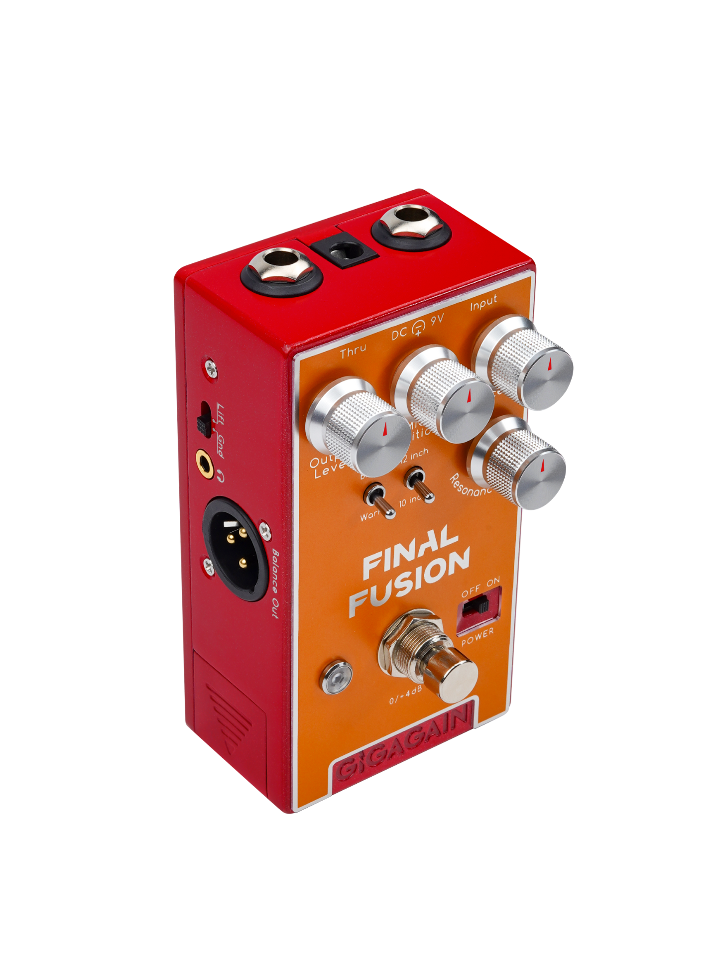 FINAL FUSION是一款带箱体模拟的主动式DI盒,不同于基于数字技术的IR箱模产品,这款基于模拟电路的DI箱模使用起来更简单快捷,且声音有着0延迟的响应速度。DI盒的核心功能是转换信号,将高阻抗(Hi-Z)的非平衡乐器信号(如电吉他、贝斯)转换为低阻抗(Lo-Z)的平衡信号,而箱体模拟则是让你在直插调音台等使用场景下获得类似经过吉他喇叭箱体的音色。除了常见的喇叭尺寸/拾音麦克风位置等调节选项,我们还为FINAL FUSION设计了一些贴合乐手使用习惯的小功能,譬如经常出现在吉他功放上的presence和resonance调节,又譬如现场演出时用于轻微抬升音量的+4dB 踩钉。